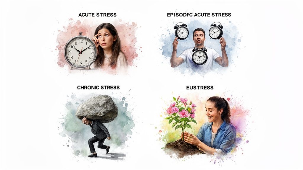 This guide isn't just about definitions; it's a hopeful roadmap. By learning to identify what you're feeling and why, you can move from a state of constant reaction to one of empowered action. We'll break down each stress type with real-world examples and provide actionable strategies to show you that a life beyond constant worry and panic is not just possible—it's within your reach. Instead of being trapped by a vague feeling of being 'stressed,' you will learn to name it, which is the first step toward taming it for good.