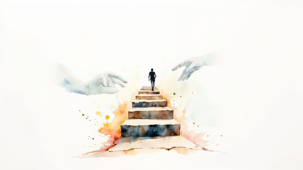 This guide gives you advice you can actually use, not just vague ideas. We'll show you how to find therapists, what questions to ask, and where to turn for immediate support. For those who are ready to take that first critical step, our guide on how to get help now offers direct resources to connect you with the right support, right away.