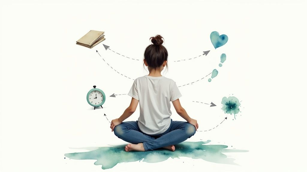 This method dismantles anxiety at its source. Instead of just managing the physical act of avoidance, it rewrites the faulty mental script causing the fear. This is one of the most powerful behavior modification examples as it fosters profound, lasting change from the inside out, offering a clear path toward a life free from the grip of panic. For a deeper look into this approach, you can explore more about understanding CBT for anxiety.