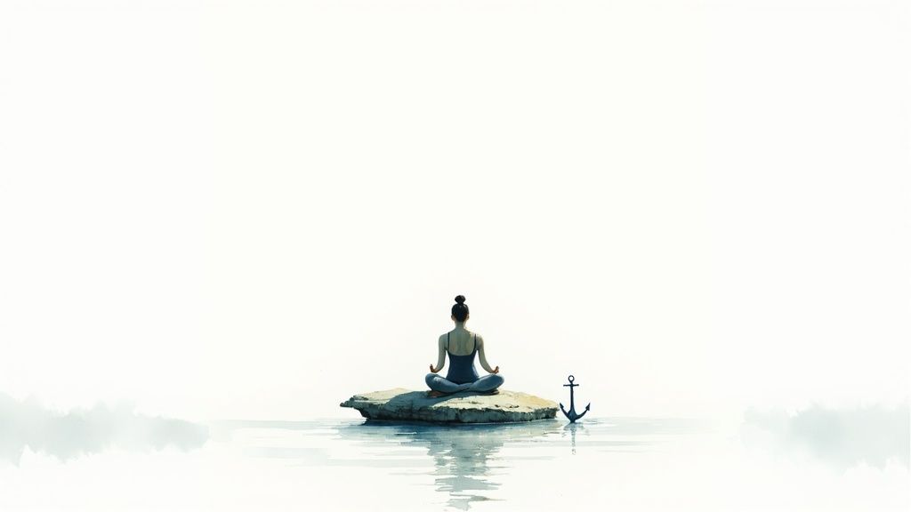 You notice the thought, you acknowledge it ("Ah, there's that worry again"), and then you let it go, gently pulling your focus back to your breath or the feeling of your feet on the floor. This simple act of observing without getting tangled up is what robs anxiety of its power. Each time you do it, you reinforce a powerful truth: you are the observer, not the thoughts themselves.