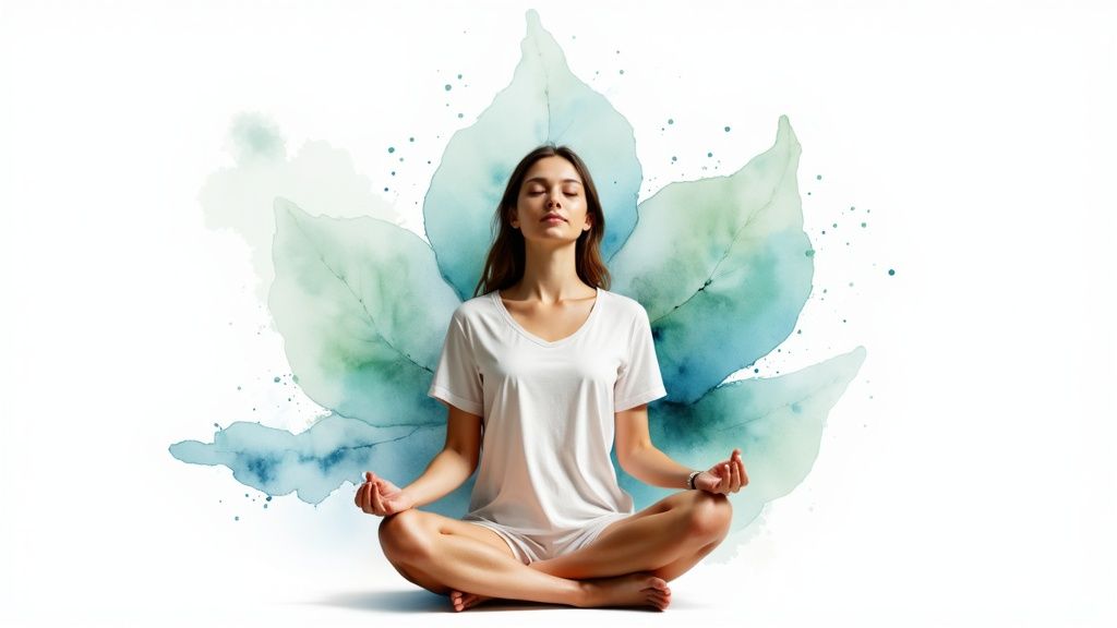 Repeat this cycle for a few minutes. The deliberate rhythm helps regulate your heart rate and sends a powerful calming message throughout your body. For a deeper dive, exploring various breathing exercises for anxiety can give you even more tools for your kit.