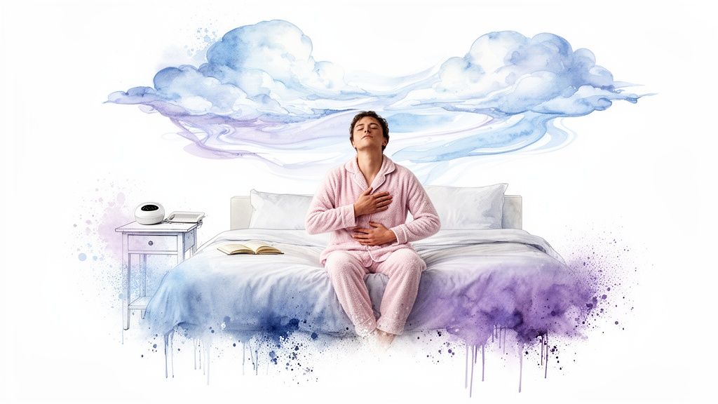 When a wave of anxiety hits just as your head hits the pillow, your body is often the first to sound the alarm. Your heart starts pounding, your breathing gets shallow, and every muscle in your body tenses up. This is your physical rescue kit—a handful of powerful, in-the-moment techniques you can use right in bed to break that physical panic cycle.