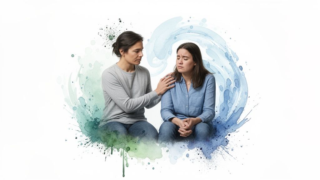 During a panic attack, you can't talk someone out of it. Your role is to be a safe anchor until the physiological storm passes. Think of it as a short-term, in-the-moment intervention. For a deeper dive, check out this guide on understanding a panic attack.