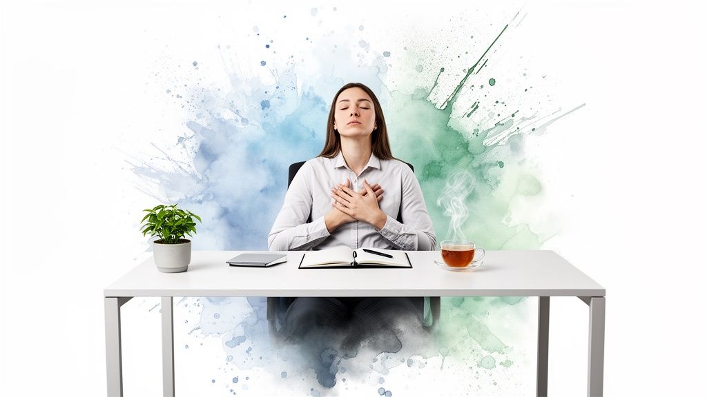 These techniques are your emergency response kit. They work by interrupting the anxiety cycle, pulling your focus away from spiraling thoughts and planting you firmly back in the present moment. They are powerful proof that a panic-free workday is not just a dream, but an achievable reality.