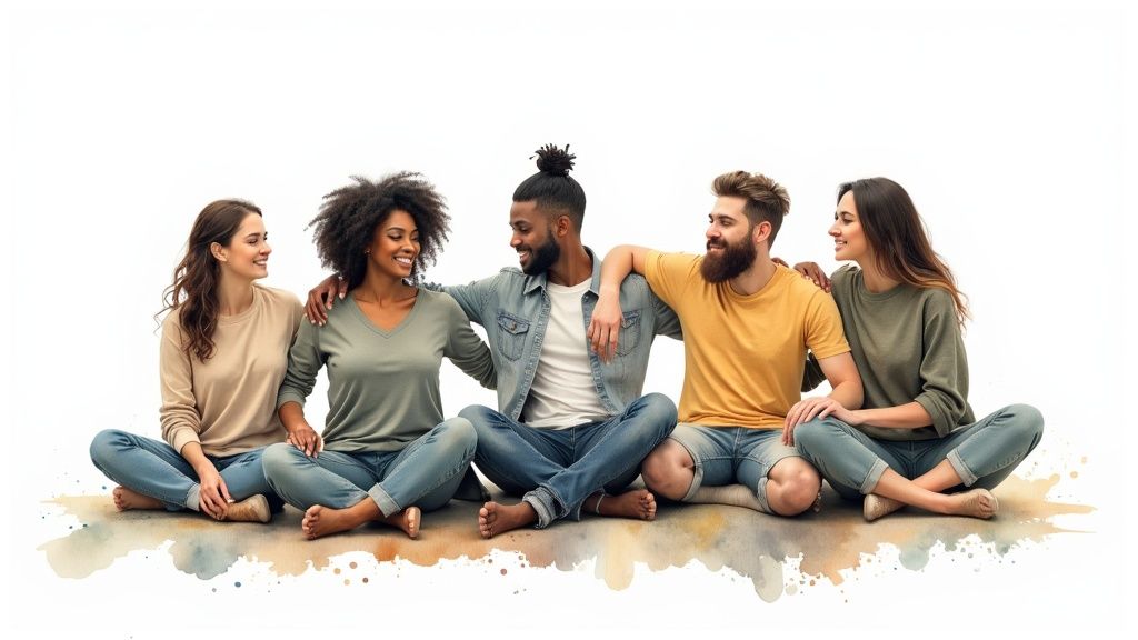 In today's world, peer support is also thriving in more casual spots like online forums, social media groups, and dedicated apps. These communities offer 24/7 access to connection, which can be an absolute lifeline during a late-night panic attack or a moment of intense worry.