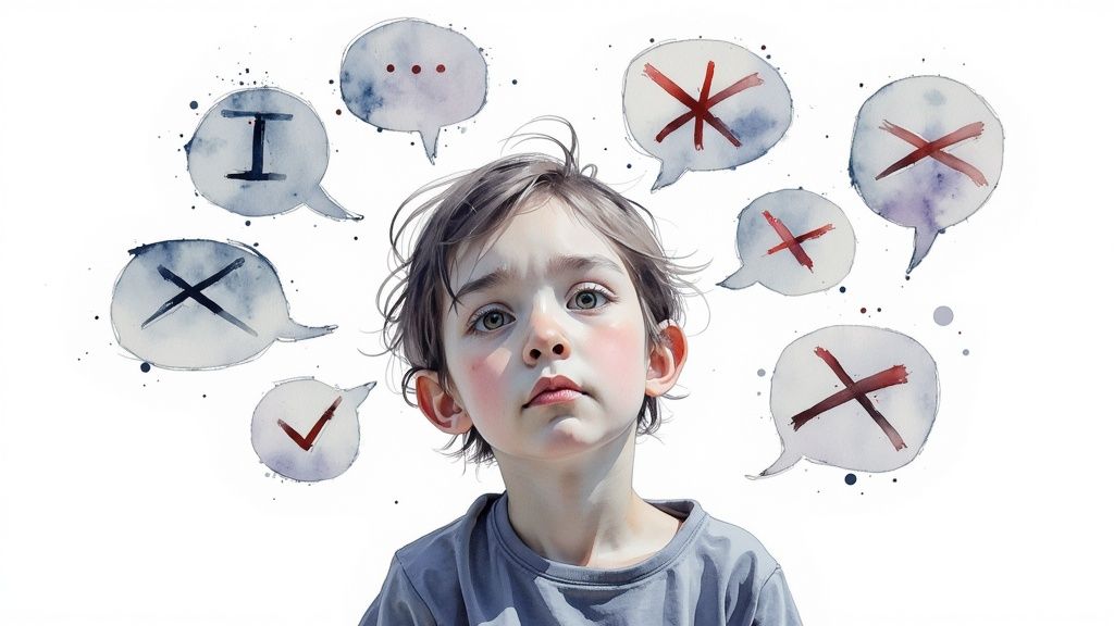 Anxiety is not a character flaw; it's a mental health condition with real symptoms like a racing heart, trembling, and intrusive thoughts. For example, telling a teenager who is anxious about school that they are "being dramatic" prevents them from opening up and getting proper support. This judgment dismisses the legitimacy of their struggle, which is often rooted in distorted thinking patterns that feel completely real in the moment. You can learn more about how anxiety affects perception by exploring cognitive distortions.