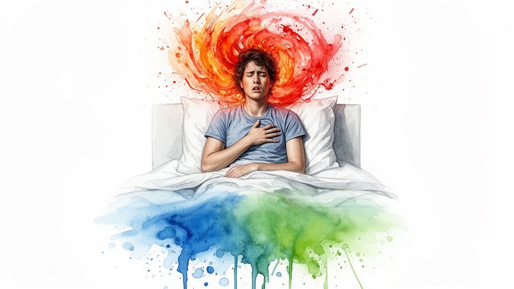 Waking up in a state of panic feels like a sudden, unprovoked ambush. You’re jolted awake not by a nightmare, but by a racing heart and a rush of dread that seems to come from nowhere. It's not a personal failing—it's your body's natural "wake-up" signal overshooting its mark, and it is something you can absolutely learn to manage and overcome.